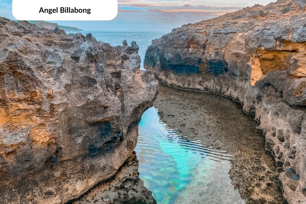 Angel’s Billabong adalah kolam alami dengan air sebening kristal yang menjadi destinasi wajib paket wisata Nusa Penida Barat. Natural infinity pool ini terbentuk dari erosi air laut yang menciptakan cekungan di tebing karang. Air jernih berwarna tosca yang berubah-ubah sesuai cahaya matahari membuat Angel’s Billabong menjadi spot foto Instagramable terfavorit di Nusa Penida.